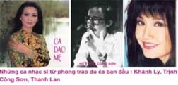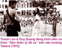 Nhật Trường – Trần Thiện Thanh viết cho chính anh cùng với Thanh Lan. Còn Khánh Ly, Lệ Thu chỉ nỉ non hát những bài của Phạm Duy như Mùa Thu Chết, Kỷ vật cho Em, Giọt mưa trên lá… Các nhạc sĩ khác không có nhạc phẩm mới chỉ cho ca sĩ nhai đi nhai lại các bài hát cũ.