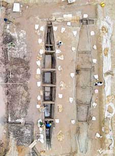 Ghi nhận tại hiện trường cho thấy, hai chiếc thuyền cổ được khai quật gần xong phần lòng thuyền. Thuyền chia thành 6 khoang. Khi khai quật, cán bộ khảo cổ bóc dỡ từng lớp đất cát cẩn thận, tỉ mỉ để tránh làm hư hại đến phần gỗ và thân thuyền.