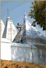 Khi đó chúa loài quỷ, Mara, đã khiến ba cô thiếu nữ mỹ miều từ phương bắc đến để dụ dỗ Ngài, trong khi Mara thân hành đến từ phía nam. Khi đó Bồ Tát đưa một ngón chân chạm vào đất, cả đội quân của Mara đều khiếp đảm và ba cô gái trở nên xấu xí như mấy bà phù thủy. Tất cả những nơi đã nêu trên, như nơi Ngài tu khổ hạnh sáu năm, và những nơi khác đều có xây đài để kỷ niệm và đặt trong đó những tượng Phật mà ngày nay vẫn còn”.