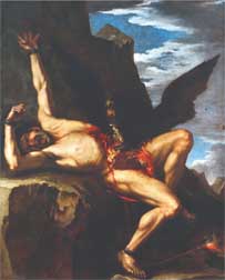 Chúng ta có bốn truyền thuyết liên quan đến Prômêtê. Theo truyền thuyết đầu tiên, vì đã phản bội các vị thần để giúp đỡ loài người, ông bị xích vào một đỉnh núi cao ở Cápcadơ và các vị thần đã phái những con đại bàng đến moi gan ông trong khi lá gan cứ mọc trở lại.