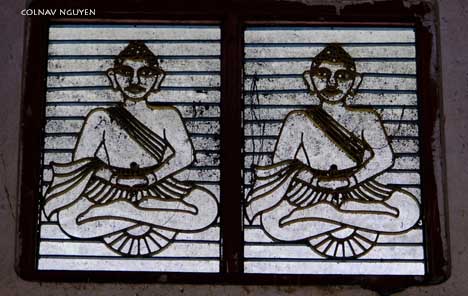Ngoài cửa lớn, đền nhận thêm ánh sáng qua một cửa sổ lưới sắt nhỏ với hình hai vị đang ngồi xếp bằng.
