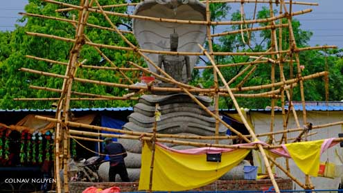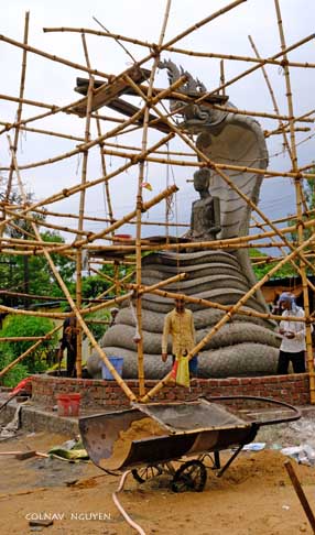Ra ngoài đi về phía bờ phải hồ, thấy có một tượng Phật ngồi được rắn hổ mang thần che chở đang trong giai đoạn giàn giáo thi công chưa xong. Ở Ấn đi đâu cũng thấy xây dựng với giàn giáo bằng tre cả, cong thẳng không thành vấn đề.