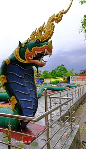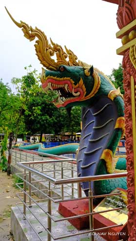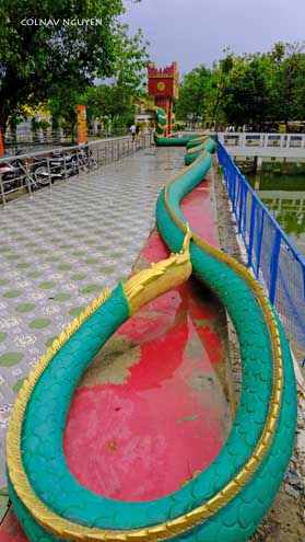 Rắn thần bên trái cổng vào, đuôi kéo dài đến hết mặt trước hồ ở cùng phía.