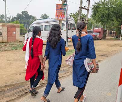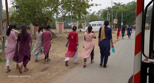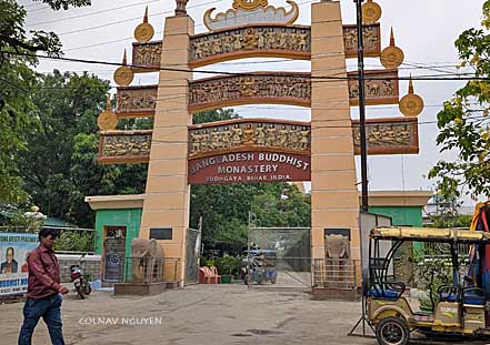 Trời hết mưa, tôi gọi tuk tuk đưa tôi đến Bồ Đề Đạo Tràng nơi chỉ cách khách sạn chừng năm phút chạy xe. Một đoàn các phụ nữ đang đi bộ,