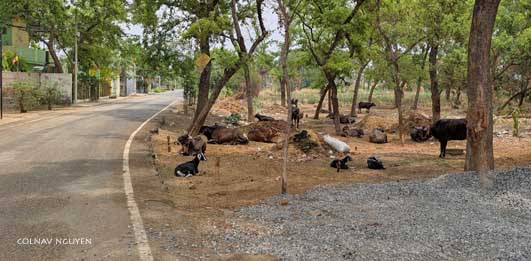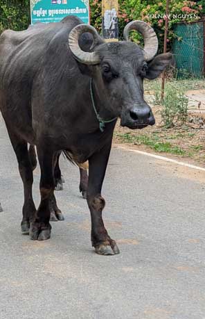 Trâu ở đây có cặp sừng cuộn lại vào trong, không chìa mũi nhọn ra ngoài để sẵn sàng ứng chiến như trâu ở các nơi khác. Phải chăng trâu nơi đây cũng giữ giới bất bạo động.