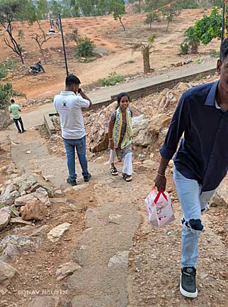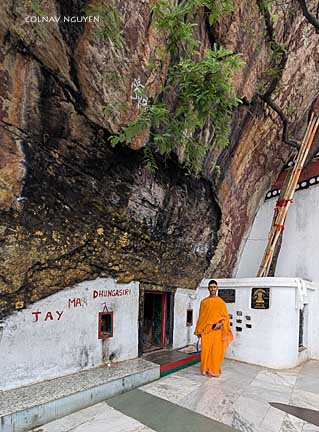 Trong những nơi vừa đi qua, chỉ có Dhamek Stupa ở vườn Lộc Uyển (Sarnath) và tháp Bồ Đề Đạo Tràng là uy nghi, đồ sộ, và đẹp đẽ nhất, tiếc rằng hình ảnh chỉ được ghi lại trong ký ức mà thôi, dù rằng tôi đã mất công chuẩn bị trước camera và tripod các thứ. Rời khỏi Bồ Đề Đạo Tràng anh hướng dẫn viên mới, dùng xe gắn máy đưa tôi lên núi Khổ Hạnh Lâm để viếng hang đá nơi Đức Phật tu khổ hạnh sáu năm.