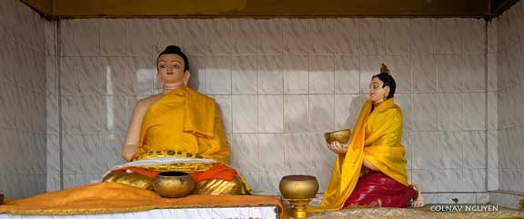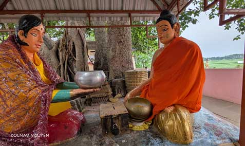 Phía khác dưới chân cây bồ đề lại có thêm tượng Sujata dâng cúng Phật.