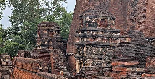 Quần thể khu Nalanda chiếm diện tích 14 héc-ta (488×244 mét). Các công trình xưa đều xây bằng gạch đỏ, nay đã đổ nát chỉ còn phế tích. Nhưng trước thế kỷ 13 vào thời hoàng kim thì Nalanda là nơi thu hút hằng nghìn sĩ tử xa gần tận Tây Tạng, Trung Hoa, Hy Lạp, và cả Ba Tư đến tu học.