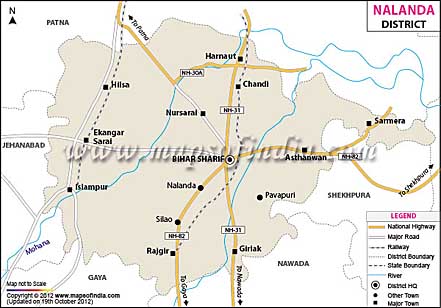 Nói Nalanda được xây dựng trong thế kỷ thứ hai là nói viện Phật học chứ thực ra trong thời Phật tại thế, khu vực này đã là vùng đất thiêng. Nó chỉ cách Vương Xá 11 cây số về phía bắc và mỗi lần Phật rời kinh thành này của vua Tần bà sa la đi lên miền bắc, ngài thường nghỉ trong vườn xoài Pavarika ở đây. Đây cũng là quê hương của Xá Lợi Phất – vị đệ tử có “đại trí tuệ” – và cũng là nơi ông chết. Đến thời A Dục vương, nhà vua đã cho xây một ngôi chùa tại đó và ba trăm năm sau, một vị vua nước Ma Kiệt Đà tên là Sankraditya mới thành lập nơi đây viện Phật học. (**)
