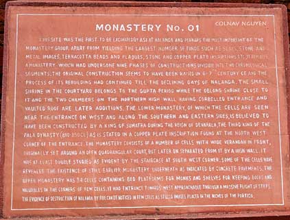 Theo Wikipedia, Nālandā (tiếng Phạn: नालंदा; /naːlən̪d̪aː/, phiên âm Hán-Việt: Na-lan-đà) là một trung tâm học tập bậc cao thời cổ đại, một tu viện Phật giáo lớn nằm ở vương quốc cổ Magadha, ngày nay thuộc tiểu bang Bihar, Ấn Độ. Địa điểm này nằm cách Patna (Hoa Thị Thành) chừng 95 km (59 mi) về phía đông nam, gần thành phố Bihar Sharif. Nalanda vốn là một trung tâm học thuật quan trọng từ thế kỷ thứ 5 và phát triển rực rỡ từ triều vua Śakrāditya (danh hiệu chưa rõ, có thể là vua Kumara Gupta I hoặc Kumara Gupta II) cho đến cuối thế kỷ 12 (1197). Sau đó Nalanda bị phá hủy toàn phần. Ngày nay, Nalanda là một Di sản thế giới được UNESCO công nhận từ năm 2016. (*)
