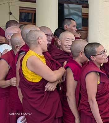 Ở Lhasa, chính phủ Tây Tạng chính thức tuyên bố Lhamo Thondup là Đức Đạt Lai Lạt Ma thứ 14 và nghi lễ nhập đạo diễn trên ngai sư tử, biểu tượng của vị lãnh đạo chính trị và tinh thần Tây Tạng. Tóc đã được cạo và, như truyền thống, vị tân lãnh đạo nhận được một cái tên mới – Jamphel Ngawang Lobsang Yeshe Tenzin Gyatso.