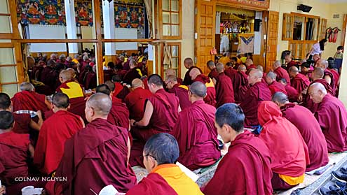 Hơn bốn năm sau, tình hình trở nên xấu đi hơn nữa. Mặc dù tất cả những nỗ lực của mình, Đức Đạt Lai Lạt Ma biết là quốc gia có thể sớm có thể sớm đi vào tình trạng chiến tranh, cho nên ngài đã sắp xếp để có kỳ thi cuối cùng của chương trình học của mình càng sớm càng tốt. Đó là năm 1959 – ông 23 tuổi. Vào mùa xuân năm 1959, Đức Đạt Lai Lạt Ma đã thông qua kỳ thi của mình, đạt được cấp bằng Geyche (tương tự như học vị Tiến sĩ Ph. D.) trong lãnh vực siêu hình học. Chẳng lâu sau đó, ngài chấp nhận lời mời đến xem trình diễn múa Trung Quốc, mà trước đây ngài đã hoãn xem do việc nghiên cứu học hỏi của mình. (*)
