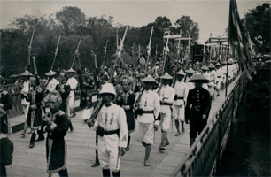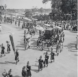 Cuộc diễn tuồng thì ở nhà Quốc tử giám chiều ngày 26 tháng 3 tây. Thoạt đầu diễn mấy lớp toàn con trẻ đóng vai, ăn mặc rất đẹp, ca vãn rất hay. Rồi đến một bài hí kịch của hai nhà làm tuồng có tiếng bên Đại Pháp. Ở Kinh Đô không có phường hát tây, các vai tuồng đều do các quí quan cùng quí phu nhân đóng cả, cũng như các vai trẻ con trên kia là do các cô các cậu đóng. Tuy không phải là những tay nhà nghề, mà khi ra diễn coi đã thạo lắm, chẳng kém gì ở nhà Đại Vũ đài Hà Nội. Khá khen thay là những nhà chủ trương hội ấy, không sẵn người sẵn đồ mà kẻ giúp công người giúp của, vì việc nghĩa gây nên một cuộc mua vui rất tao nhã. Hoàng Thượng, quan Toàn quyền, các quan tây quan ta đến xem đông lắm. Hát hai tối luôn mà tối nào cũng chật ních những người. Đương hát có các cô đi quyên tiền cho Hồng Thập Tự. Chắc bữa đó thu được nhiều, vì ai đã tới đấy tất sẵn lòng giúp về việc nghĩa, huống các nhà chủ trương lại hết tài hết sức làm cho xứng đáng cái hảo tâm của người xem!
