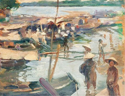 Bức tranh của họa sĩ Bouchaud chưa phải là bức tranh vẽ sông Hương sớm nhất của các họa sĩ người Pháp.