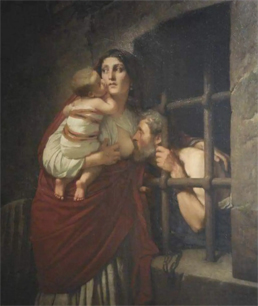 Bức tranh có vẻ “phạm thuần phong mỹ tục” này vừa được bán đấu giá tại Paris với giá 30 triệu Euro. Tranh vẻ một phụ nữ trẻ đang cho một ông già bú qua song sắt của phòng giam nhưng câu chuyện đằng sau nó là một ghi nhận lịch sử. Người đàn ông tội nghiệp đã bị kết án “chết đói” vì ăn cắp một ổ bánh mì dưới thời vua Louis XIV ở Pháp. Người phụ nữ là con gái duy nhất của ông và là người duy nhất đến phòng giam thăm ông. Cô được phép đến thăm ông mỗi ngày, nhưng bị khám xét kỹ lưỡng, không được mang thức ăn vào, vi phạm sẽ bị án tử hình. Khi ông phạm nhân vẫn còn sống bốn tháng sau đó, những người cai ngục đã vô cùng bối rối và bắt đầu theo dõi khi cô đến thăm cha. Trước sự kinh ngạc tột độ, họ thấy cô đang cho cha mình bú, chia sẻ sữa của con trẻ cho cha già, bất chấp sự nguy hiểm cho tính mạng. Cảm động vì lòng hiếu thảo và tình yêu thương của người phụ nữ dành cho cha mình, các thẩm phán đã tha tội cho người cha và thả ông ra. Chi tiết lịch sử này đã được một danh họa thời ấy ghi nhận lại để người đời sau biết về những ngày đen tối của dân chúng Pháp trong khi triều đình thì sống xa hoa lộng lẫy, sự cách biệt về giai cấp trong xã hội đã là nền tảng cho cuộc cách mạng Pháp ngày 14 tháng 7 năm 1789 nhưng nội dung bức tranh cũng làm nổi bật sự hy sinh sâu sắc của người phụ nữ trong cuộc sống hàng ngày.