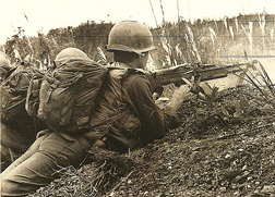 Chiều đang xuống dần, những người lính cũng vội vã sửa lại hầm hố, đào giao thông hào cho sâu thêm, người chết và thương binh tăng thêm làm nặng thêm mối âu lo của Tiểu đoàn, tôi chạy vội ra phía hai đệ tử đang ngồi chong mắt nhìn ra ngoài tuyến, trên tay hai đứa có hai cây M16 và dây băng đạn từ lúc nào (hai đệ tử pháo binh mang máy cho ông thầy thường không đem theo súng).