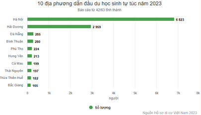 Ghi nhận từ 12 địa phương vào năm 2022 cho thấy hơn 8.850 người du học, nhưng chỉ khoảng 1.160 người trở về. Năm 2023, số trở về là 543 người.